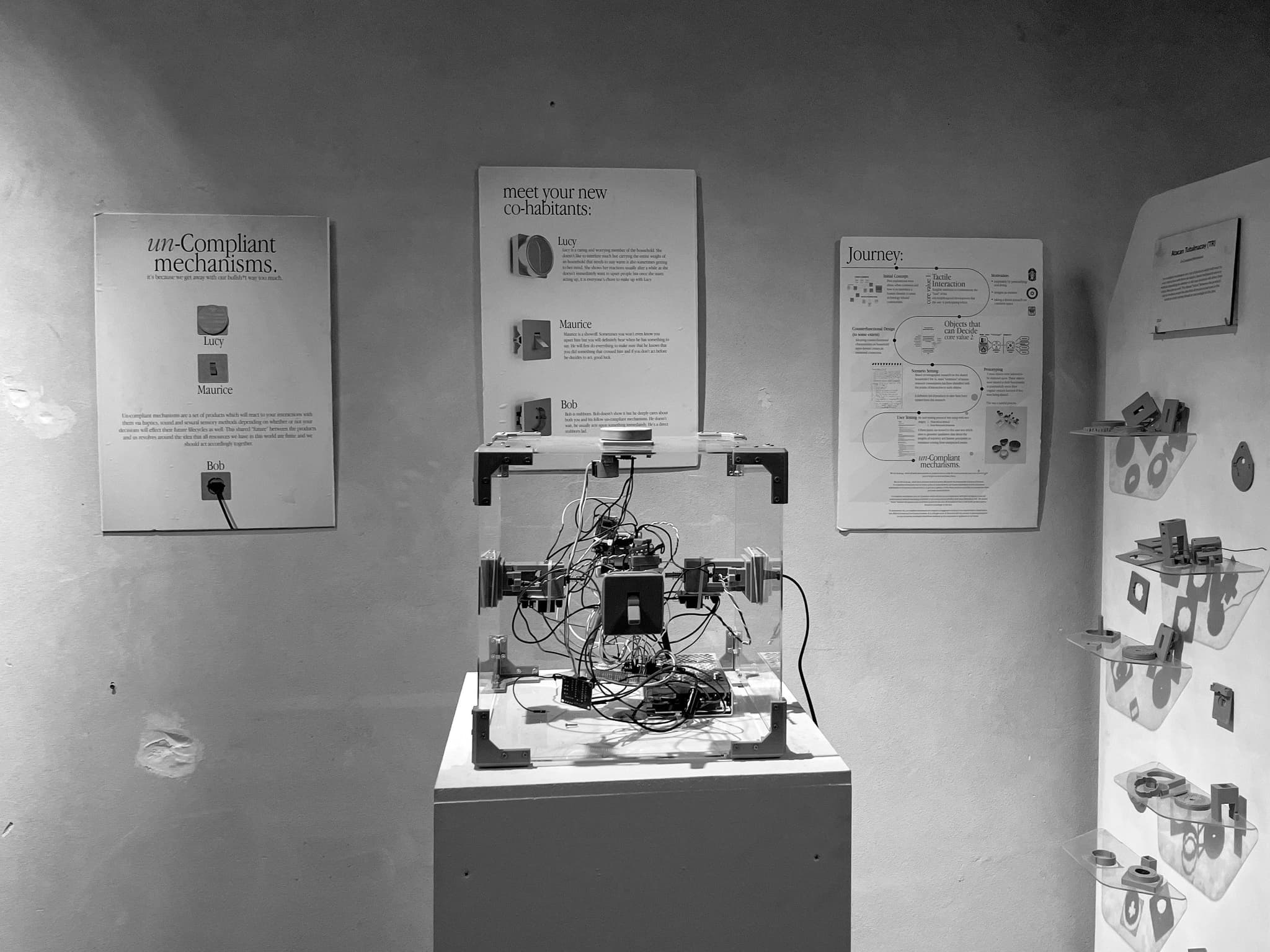 Un-compliant Mechanisms is an exploration of a world where humans are not the sole rulers of their surroundings, but rather co-habitants with objects, commodities, and the environment as a whole.