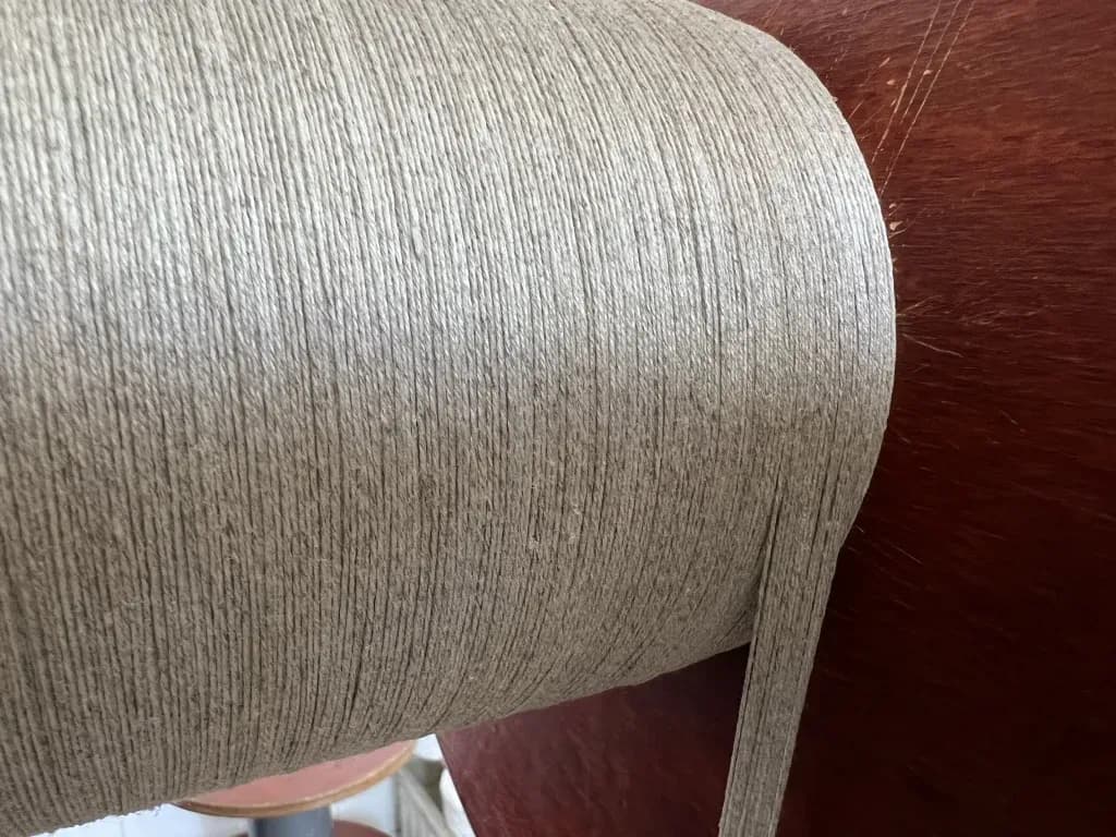 Our yarn is typically about 1,200 g per kilometer, and we’ve learned that the internal construction matters as much as weight. A yarn built from many fine strands holds its round profile and compresses evenly. For example, six 200-tex strands spun together outperform three 400-tex strands, the latter tends to flatten, making waxing uneven and production slower.