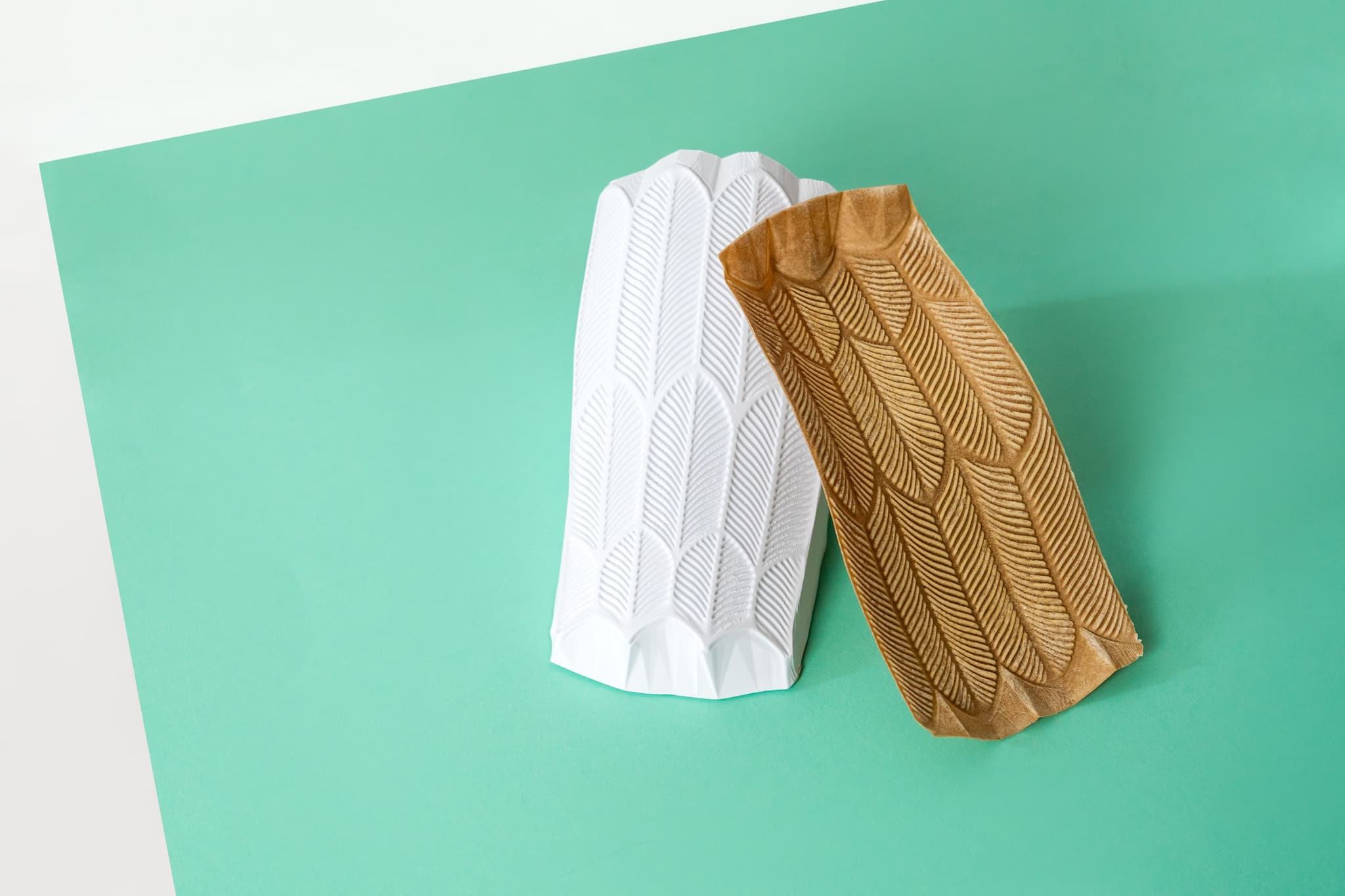 Our automation fulfils consistency through precise robot programming. By integrating topological mapping of the target mold and calibrating for each material’s flow behavior, we control layer thickness and surface structure. Once calibrated and tested, the system deposits biomass with unwavering repeatability. Every piece is a perfect match to the last.