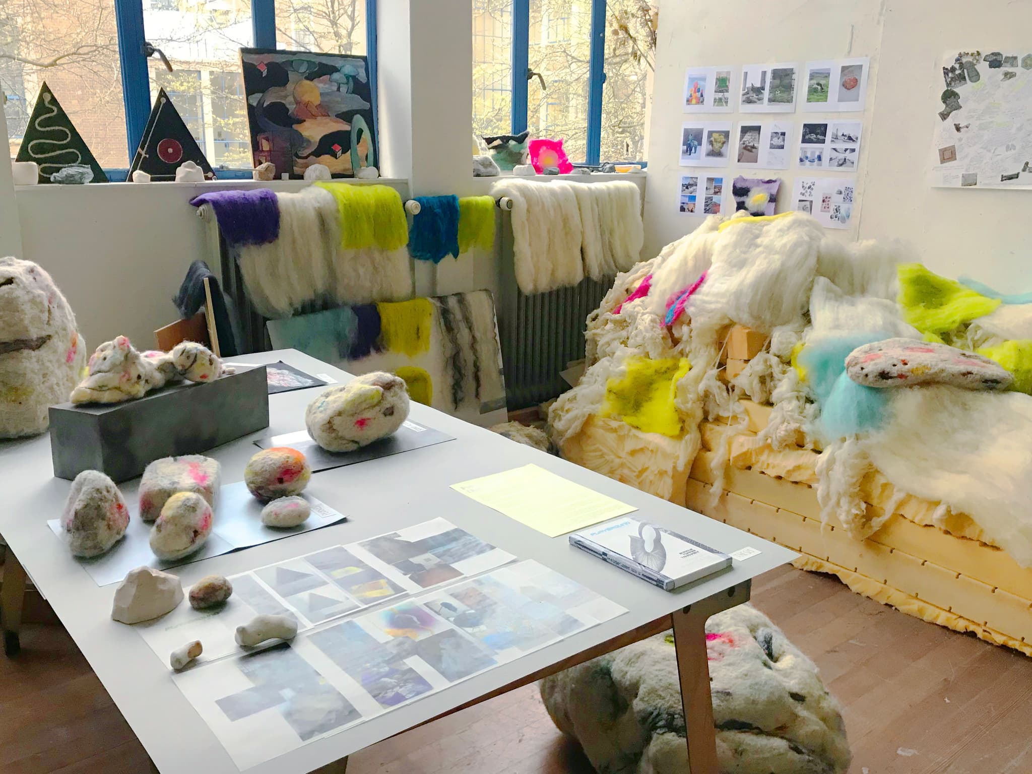 For Playground 3000, we dyed and carded the wool ourselves, which gave us more freedom in developing a playful color palette. This approach evolved further in the "Woolographic" series, where color manipulation became central.