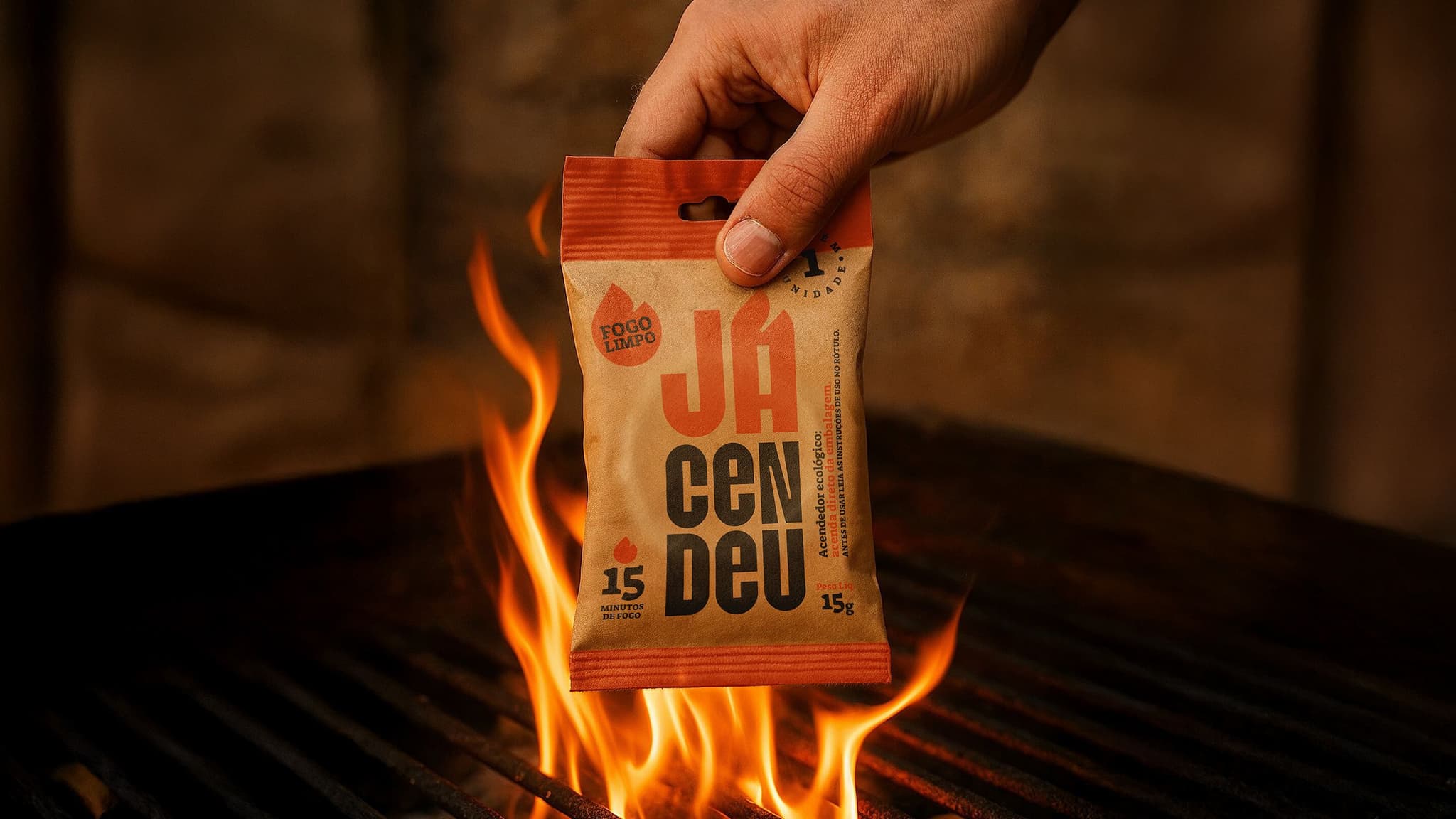 A strong example is Jácendeu, a charcoal lighter made entirely from bamboo waste, featuring paper packaging designed to be discarded directly into the fire. The project was recently awarded at the ABRE Awards, Brazil’s leading celebration of packaging excellence.